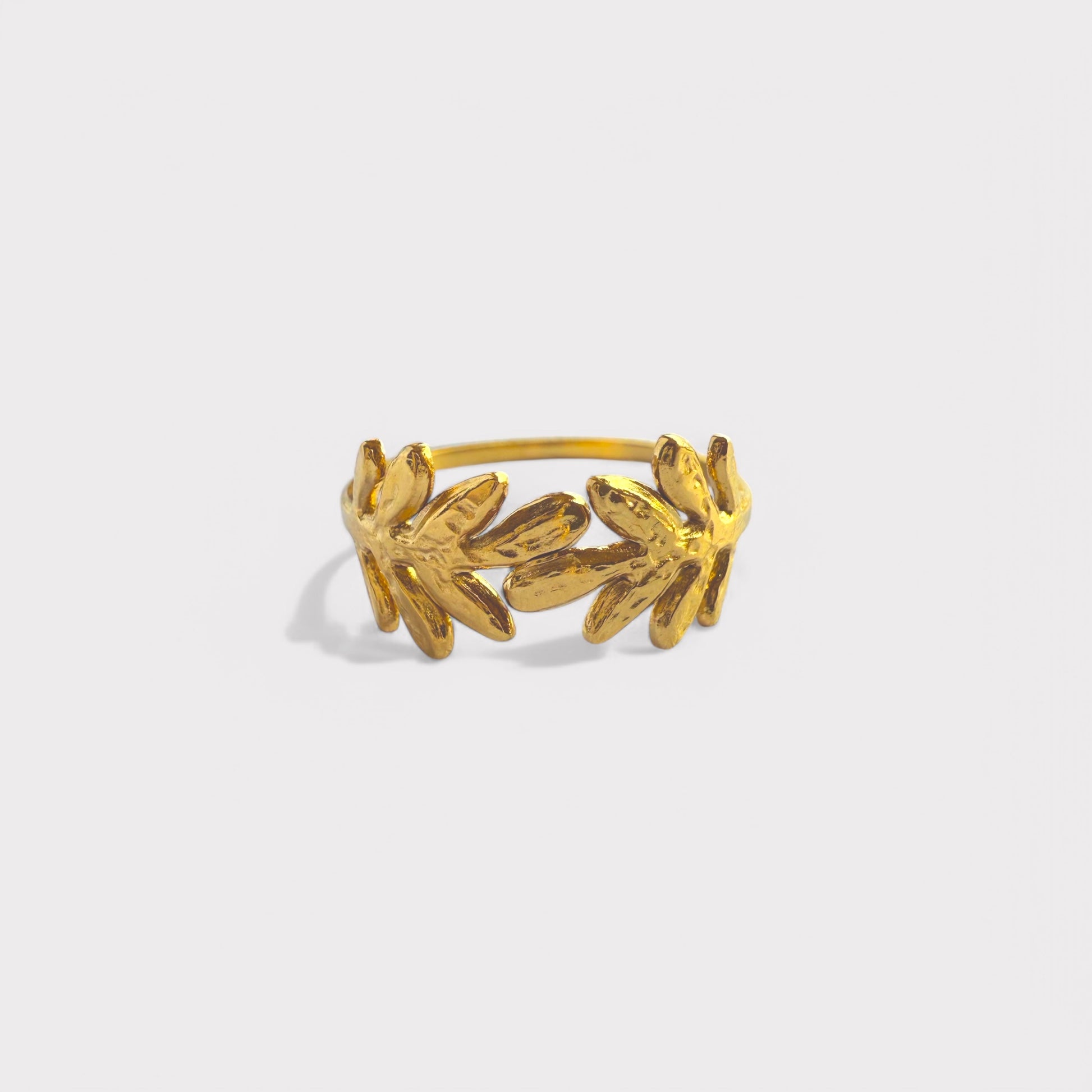 Anel inspirado na arte clássica romana, com detalhes de folhas em relevo. Um acessório elegante e simbólico que celebra a força e a beleza da natureza histórica.