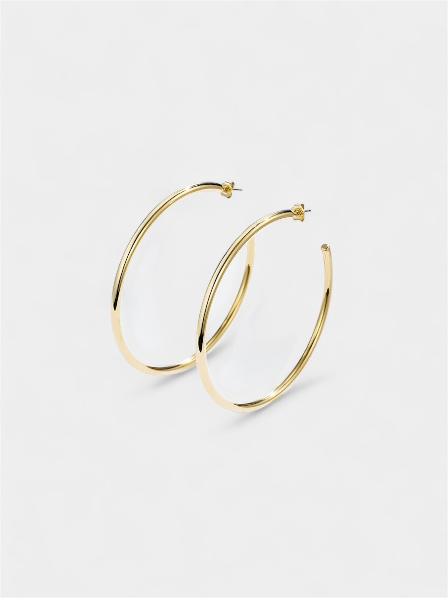 As Círculo Solar são argolas grandes e finas com acabamento dourado brilhante, perfeitas para quem busca presença com leveza. Seu design minimalista remete ao sol redondo no alto do céu — símbolo de liberdade, energia e brilho. Versáteis, atemporais e marcantes, elas são o acessório indispensável dos dias ensolarados e das noites quentes à beira-mar.
