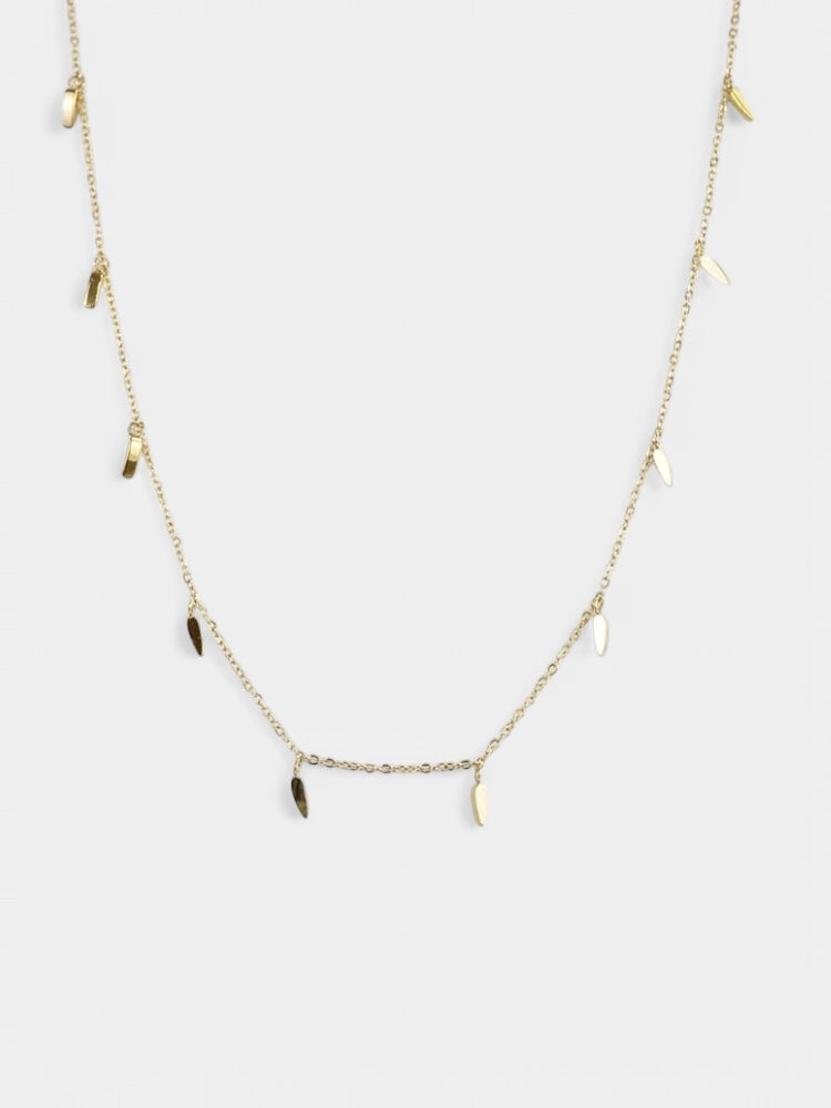 Colar de aço inoxidável com charms em forma de lágrimas.