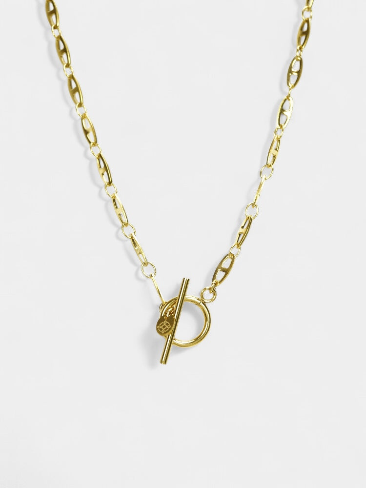 Minimalista e elegante, o colar Dora traz uma corrente alongada com elos ovais e um fecho tipo toggle, que une funcionalidade e sofisticação em um design moderno. O pequeno pingente com detalhe floral gravado adiciona um toque delicado e simbólico à peça. Ideal para compor looks do dia a dia ou dar charme extra em produções noturnas.