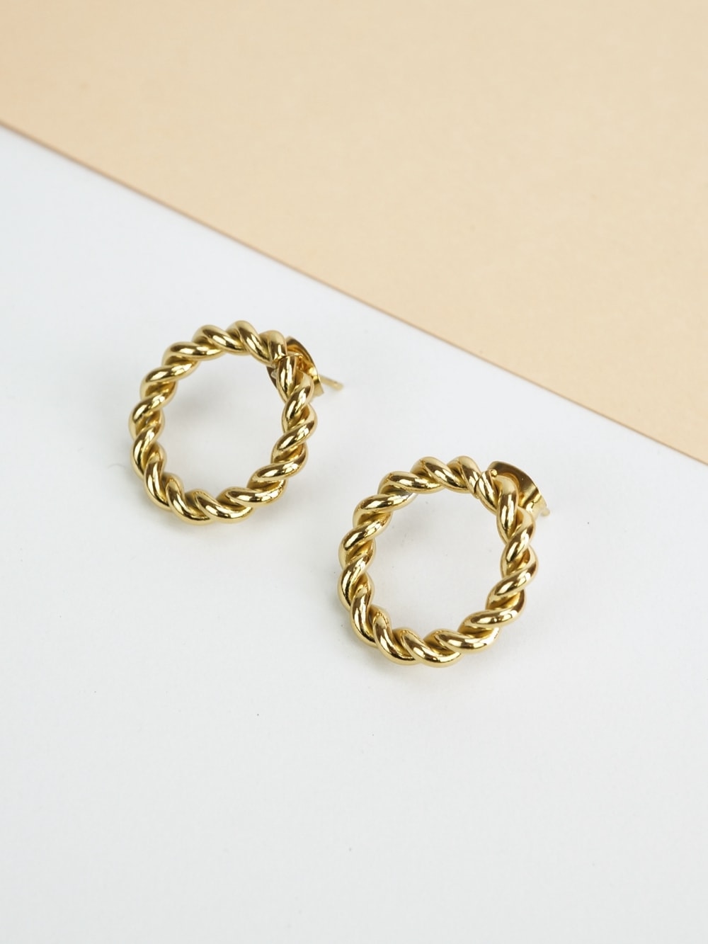 Com design circular e textura trançada, o Brinco Gaia une o clássico ao contemporâneo em uma peça versátil e cheia de personalidade. Seu acabamento dourado confere brilho na medida certa, tornando-o perfeito para complementar looks casuais ou mais elegantes. Leve e confortável, é aquele tipo de acessório que transforma o básico em sofisticado, todos os dias.
