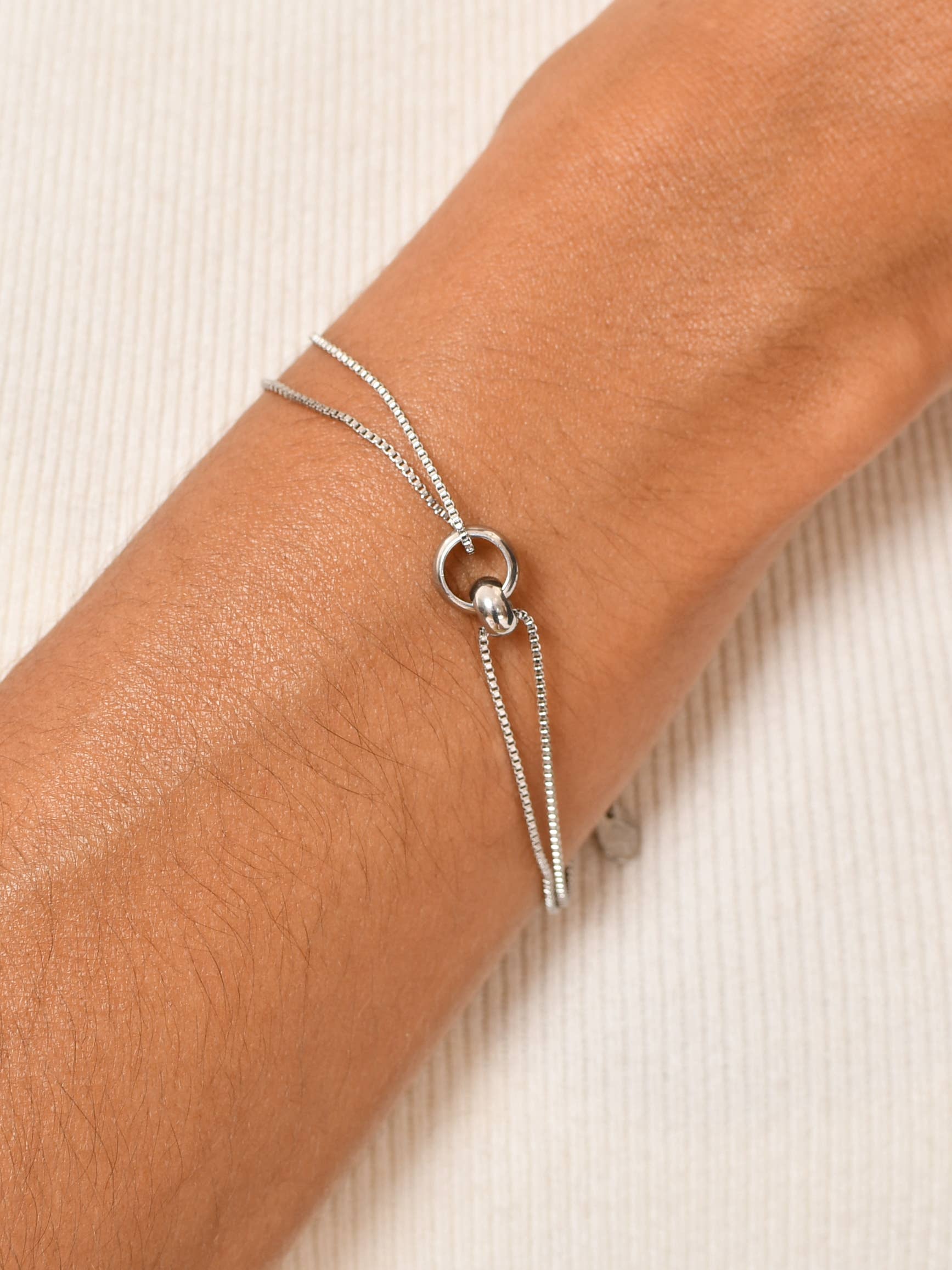 Pulseira simbólica com elos entrelaçados que representam ligação e afeto. Um acessório leve e significativo, ideal para oferecer ou usar diariamente.