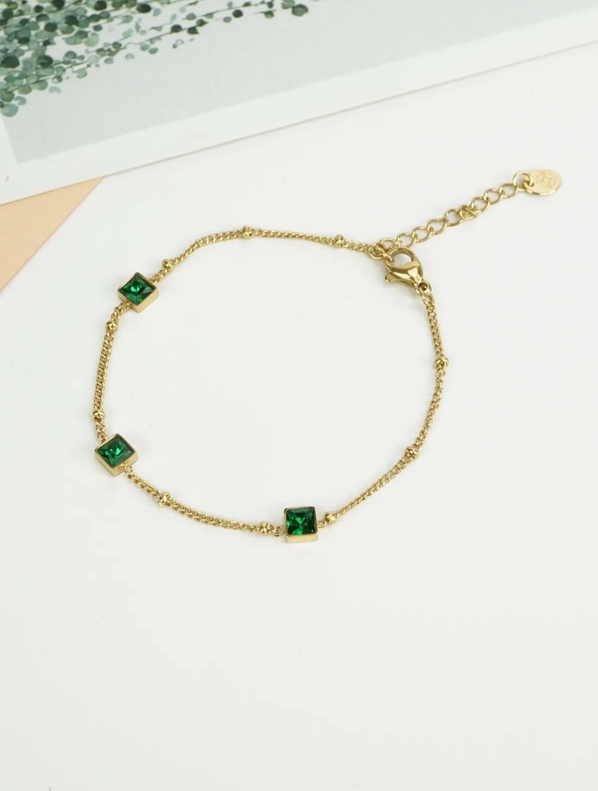 Pulseira com cristais verdes jade e fecho ajustável. Um acessório cheio de significado e beleza natural, perfeito para trazer equilíbrio ao teu estilo.